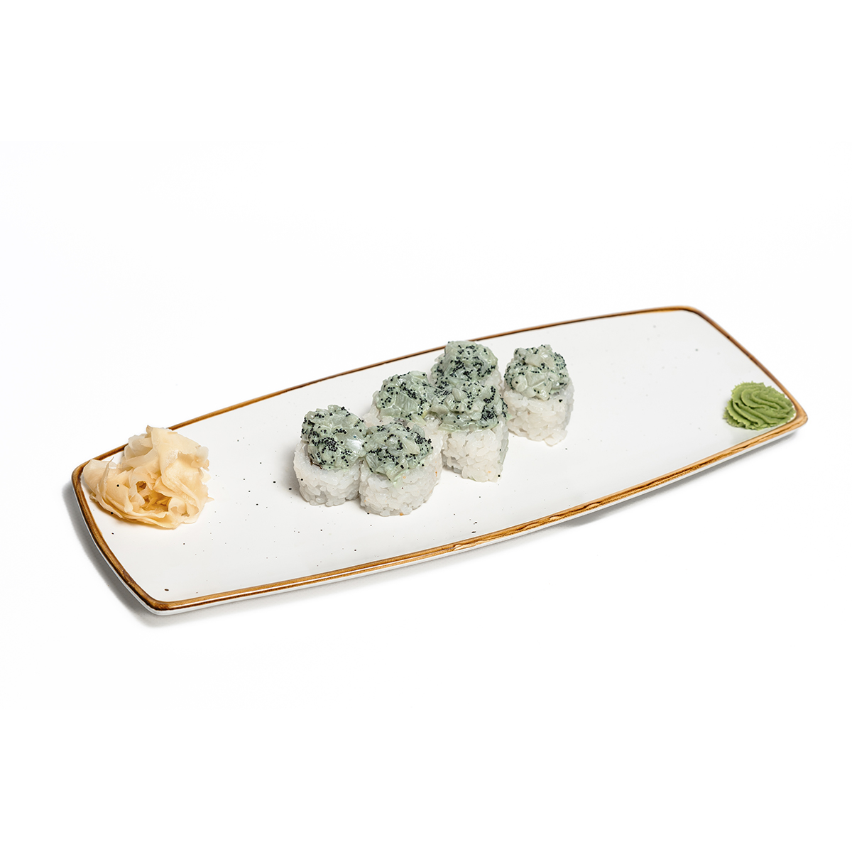 креветка, темпура, курка копчена, кімчі, авокадо, ікра летючої риби, соус унагі, кунжут